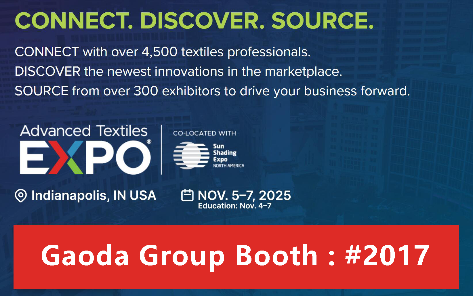 Gaoda Group-ek Indianapolisen (IN) ospatuko den AT Expo 2025 erakusketan parte hartuko du azaroaren 05etik azaroaren 07ra. Errendimendu handiko industria-ehunen munduko fabrikatzaile nagusi gisa, Gaoda Group-ek PVC labana estaltzeko material sorta osoa erakutsiko du, sare-materialak, errendimendu handiko urdila-ehun industrialak eta ingurumena errespetatzen duten benetako larruzko produktu birziklatuak.